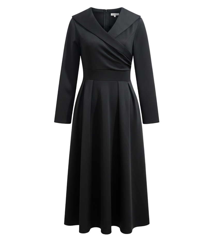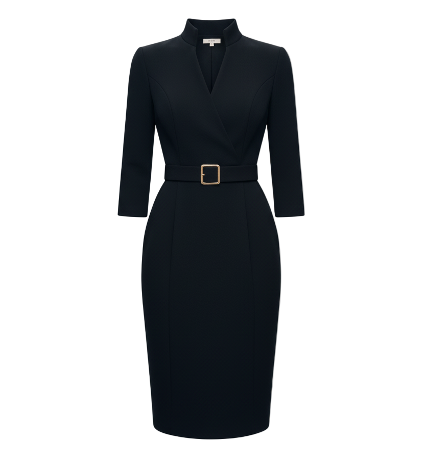 Nora | Viimeistelty Musta Mekko Vyöllä ja Mandarin-kauluksella