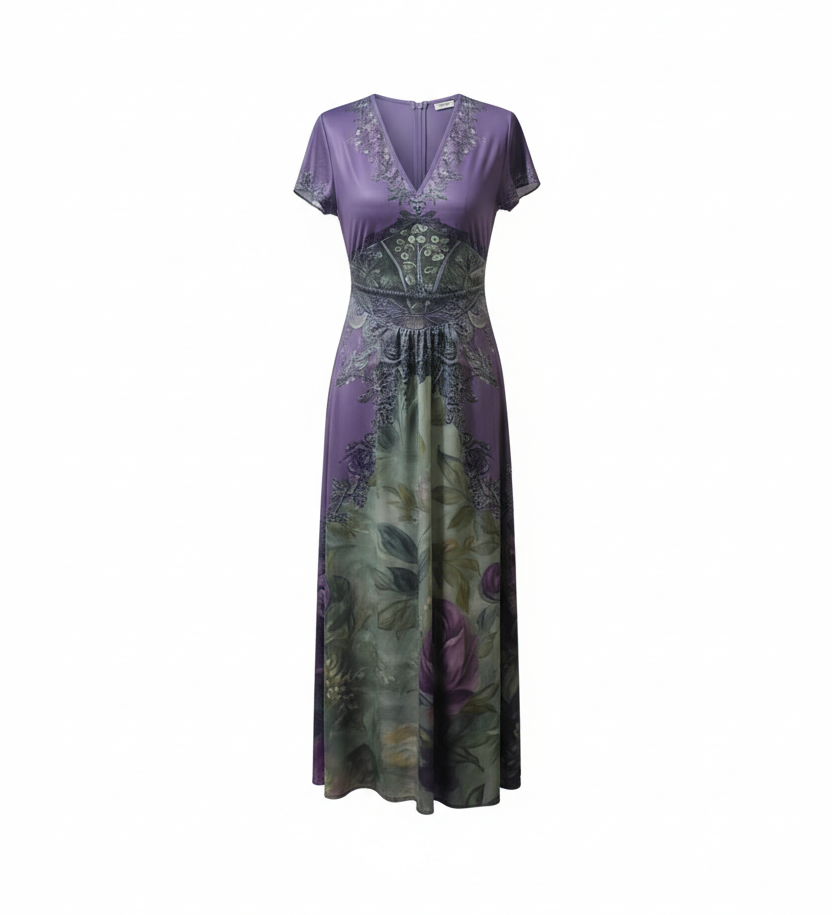 Jeanne™ | V-pääntie-mekko, jossa on printti