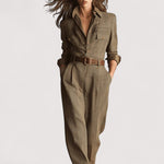 Ailina™ | Ruskea, tyylikäs Tweed-rakenteinen Ruudullinen Yleisöhaalaripuku