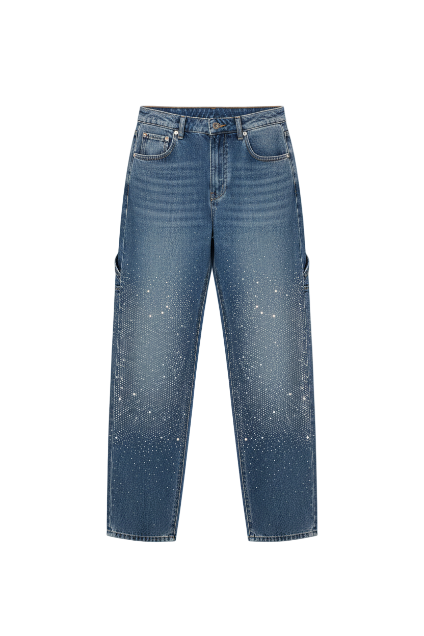 Balloon fitin, puuseppä-yksityiskohtien ja kimalteiden yhdistelmä luo farkut, jotka kiinnittävät heti huomion ja korostavat henkilökohtaista tyyliäsi.