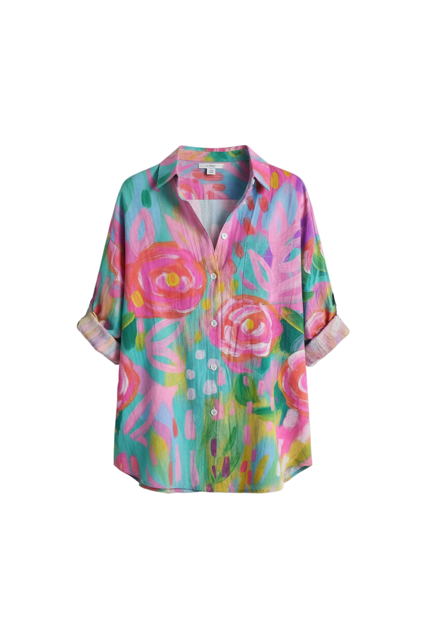 Tämä paita on todellinen katseenvangitsija! Sen värikäs ja taiteellinen printti tuo vaatekaappiisi leikkisän ja ainutlaatuisen ilmeen. Mukava istuvuus ja ilmava materiaali tekevät siitä ihanteellisen rentoihin ja tyylikkäisiin tilaisuuksiin.