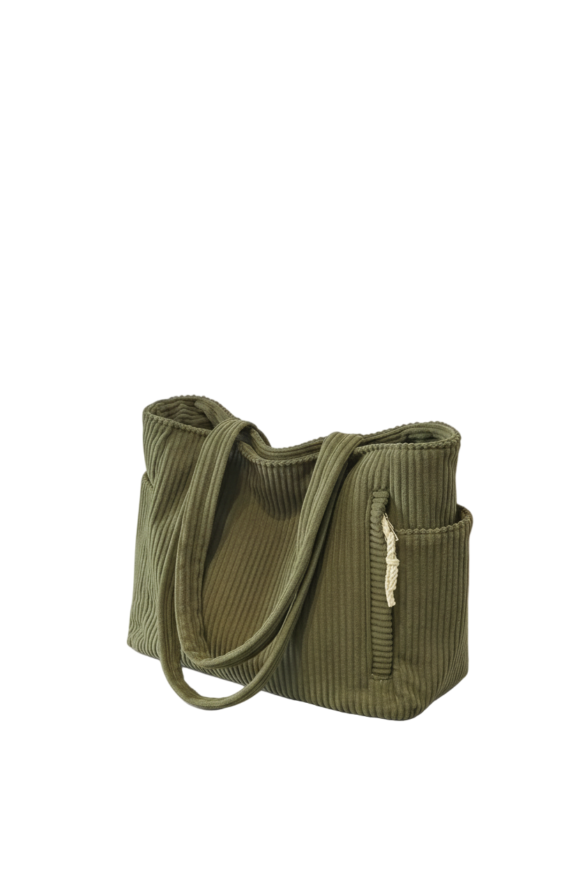 Tämä ribattu kantolaukku tuo raikasta tyyliä ja käytännöllisyyttä arkeesi. Sen moderni muotoilu ja tilava sisus tekevät siitä täydellisen kaikenlaiseen, mitä tarvitset matkalla.