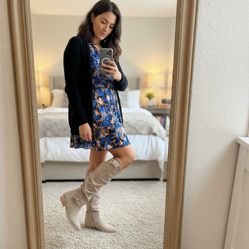Joka virtaa mukanasi, Rachel™ Mini Mekko ratkaisee eleganssin ja mukavuuden löytämisen ongelman, tarjoten mokkan pehmeän syleilyn. Sen imarteleva mini-leikkaus korostaa siluettiasi ja herkät pitsiyksityiskohdat lisäävät hienovaraista romanttista viehätystä, tehden siitä ajattoman eleganssin kappaleen.