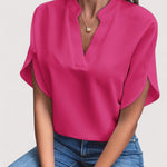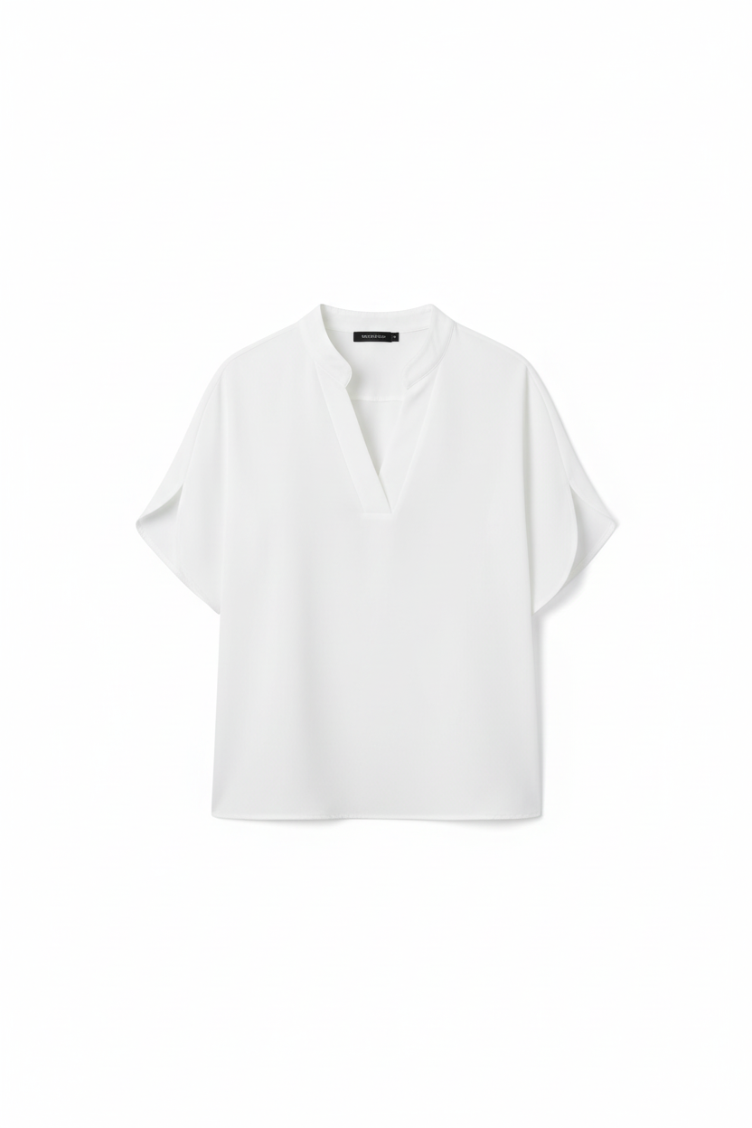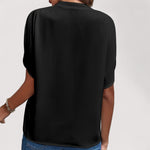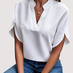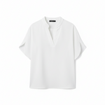Tämä V-pääntie-paita ilmentää vaivatonta voimavaatetusta, suunniteltu naiselle, joka astuu joka huoneeseen tyylillä ja hienostuneisuudella.